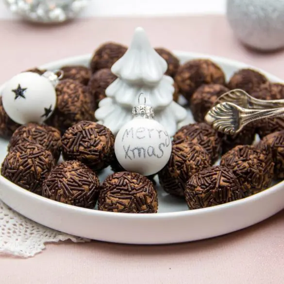 Die leckeren Kugeln sind außen mit Schokostreuseln oder Schokoraspeln bedeckt. Das Innere ist sehr weich und zergeht auf der Zunge.