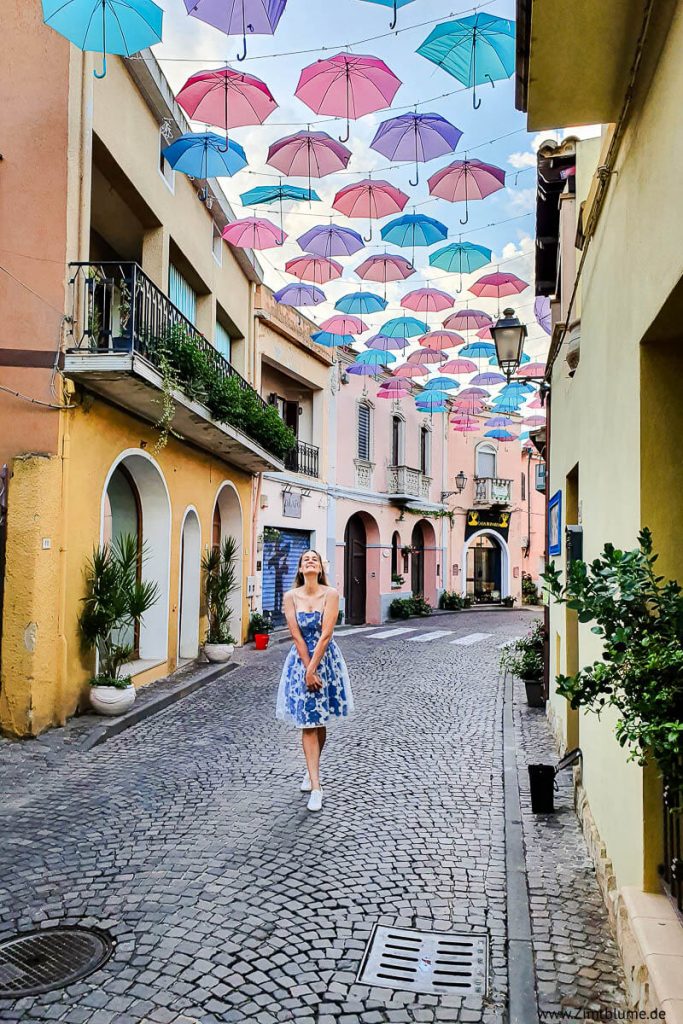 Mein Highlight sind die pastellfarbenen Regenschirme in Pula. Die Straße der Regenschirme befindet sich in der via Nora unweit entfernt von der Chiesa Parrocchiale di S.Giovanni Battista entfernt. Die beste Zeit für Fotos ist früh morgens. Dann leuchten die Regenschirme besonders schön und Du kannst fast ungestört Fotos machen.