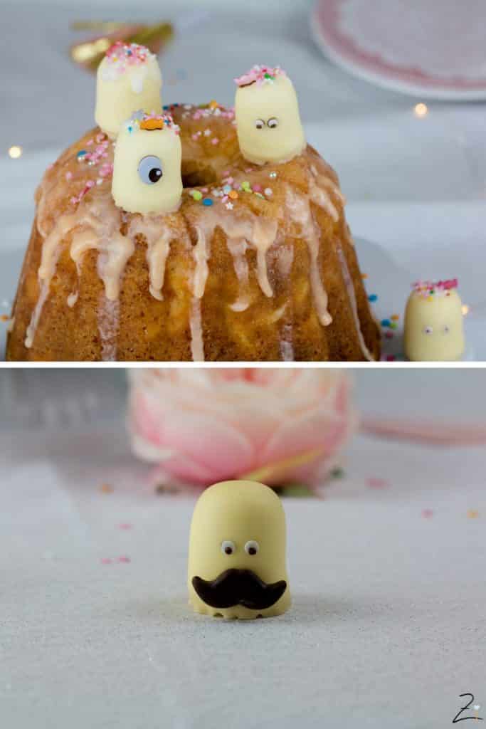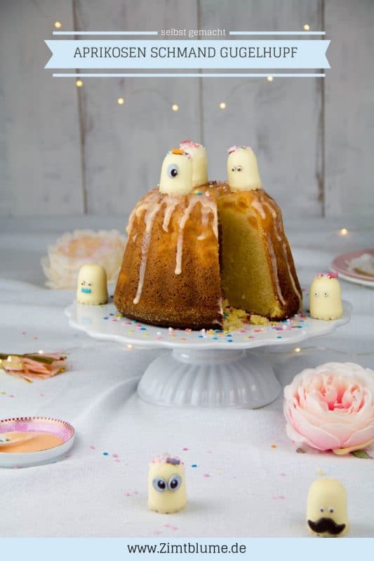 Ehrlich gesagt sollte das Gugelhupf backen gar nicht in einer Schokokuss Party enden. Aber ich habe die kleinen Kerlchen bei Pinterest gesehen und musste sie unbedingt nachmachen. Und jetzt kann ich mir den Aprikosen Schmand Gugelhupf ohne Funfetti-Schokokuss-Gedöns gar nicht mehr vorstellen. 😜