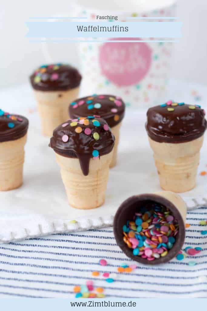 Heute gibt Waffelmuffins! Die kleine Kuchen aus dem Waffelbecher lassen sich perfekt mitnehmen und sind als Party Food unschlagbar. Je nach Anlass können sie beliebig dekoriert werden. Passend zur Faschingszeit oder zum Geburtstag habe ich für Dich natürlich eine Rezept Idee für Muffins in der Waffel mit ganz viel Konfetti!