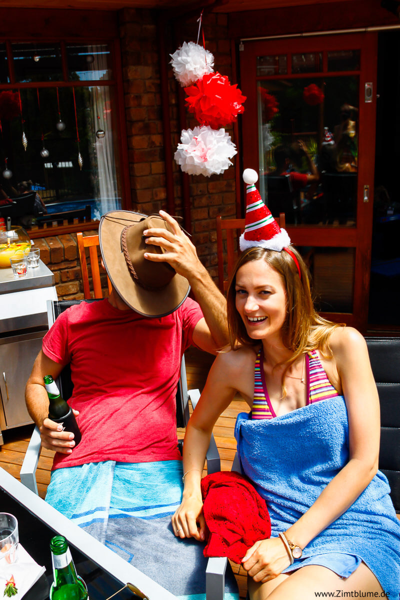 Und wie feiern Australier:innen Weihnachten? Bei uns gab es am 24.12. eine Feier im Familien- und Freundeskreis. Viel Geplantsche im Pool, Essen vom BBQ, köstliche Meeresfrüchte und zum Nachtisch den typischen Christmas Pudding mit Brandy Sauce in den ich mich reinsetzen könnte. Geschenke gibt es übrigens erst morgens am 25.12.