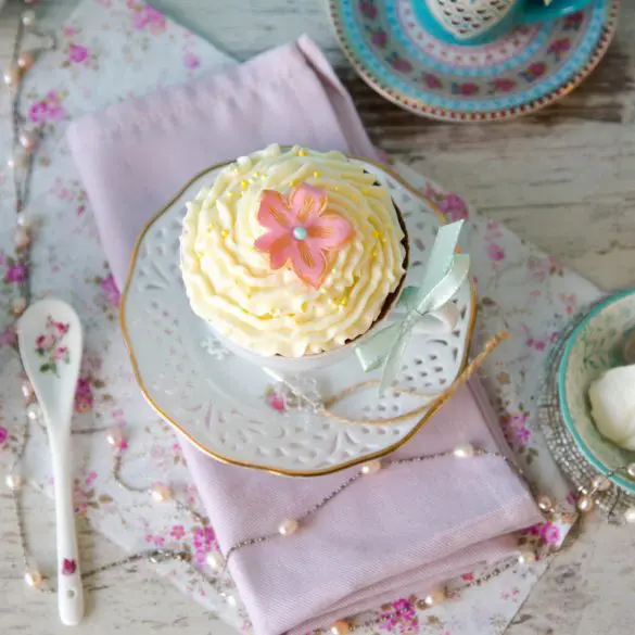 Verborgen unter einem köstlichen Frischkäsefrosting verbirgt sich der leckerste Tassenkuchen überhaupt: Der Vanille Mug Cake. Der Becherkuchen mit Vanille braucht weniger als 2 Minuten in der Mikrowelle. Glaubst Du nicht? Na dann pass mal auf!