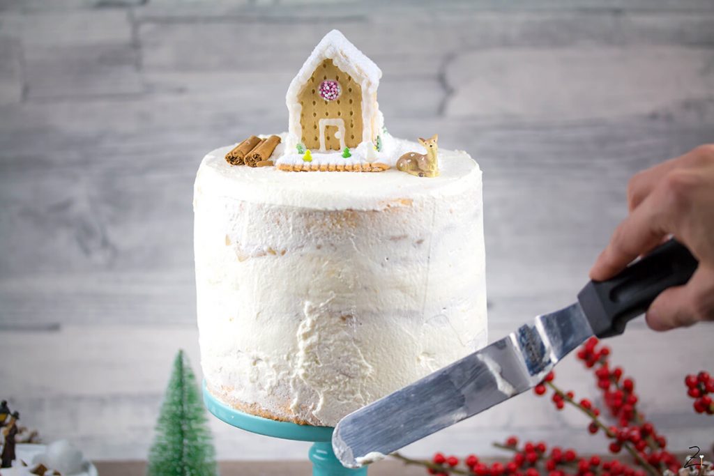 Die liebe Emma von Emmas Lieblingsstücke hat mich zu dieser Weihnachtstorte inspiriert. Ihr Törtchen kommt ganz ohne Fondant aus und ist nur mit Zimtsternen dekoriert. Das hat mir gefallen. Ich habe mich bewusst gegen eine reich verzierte Torte mit Fondant entschieden. Bei uns mag niemand besonders gerne Fondant und es soll ja möglichst allen schmecken. Meine Apfeltorte kommt also einfach mal naked mit einem Hauch Sahne daher.